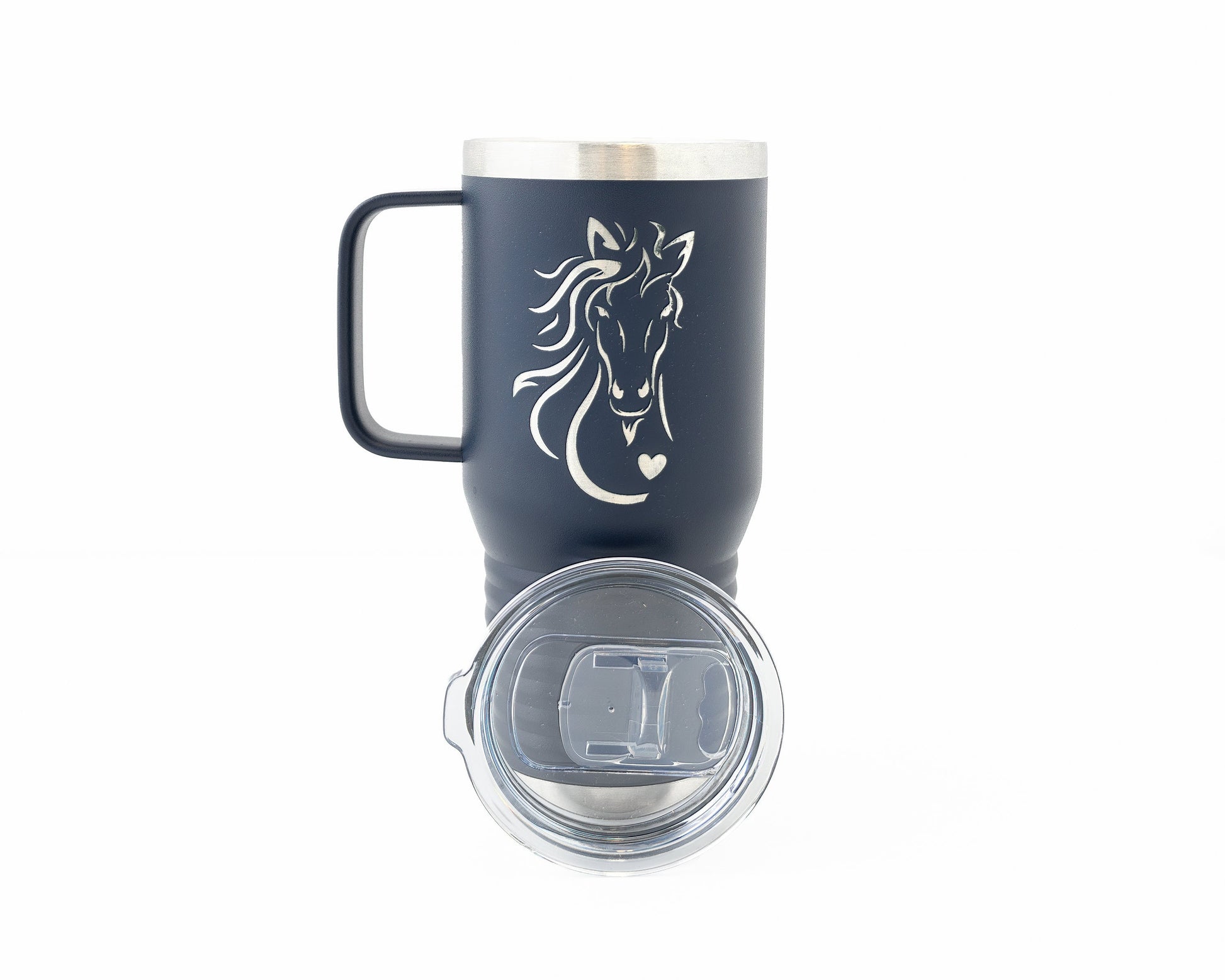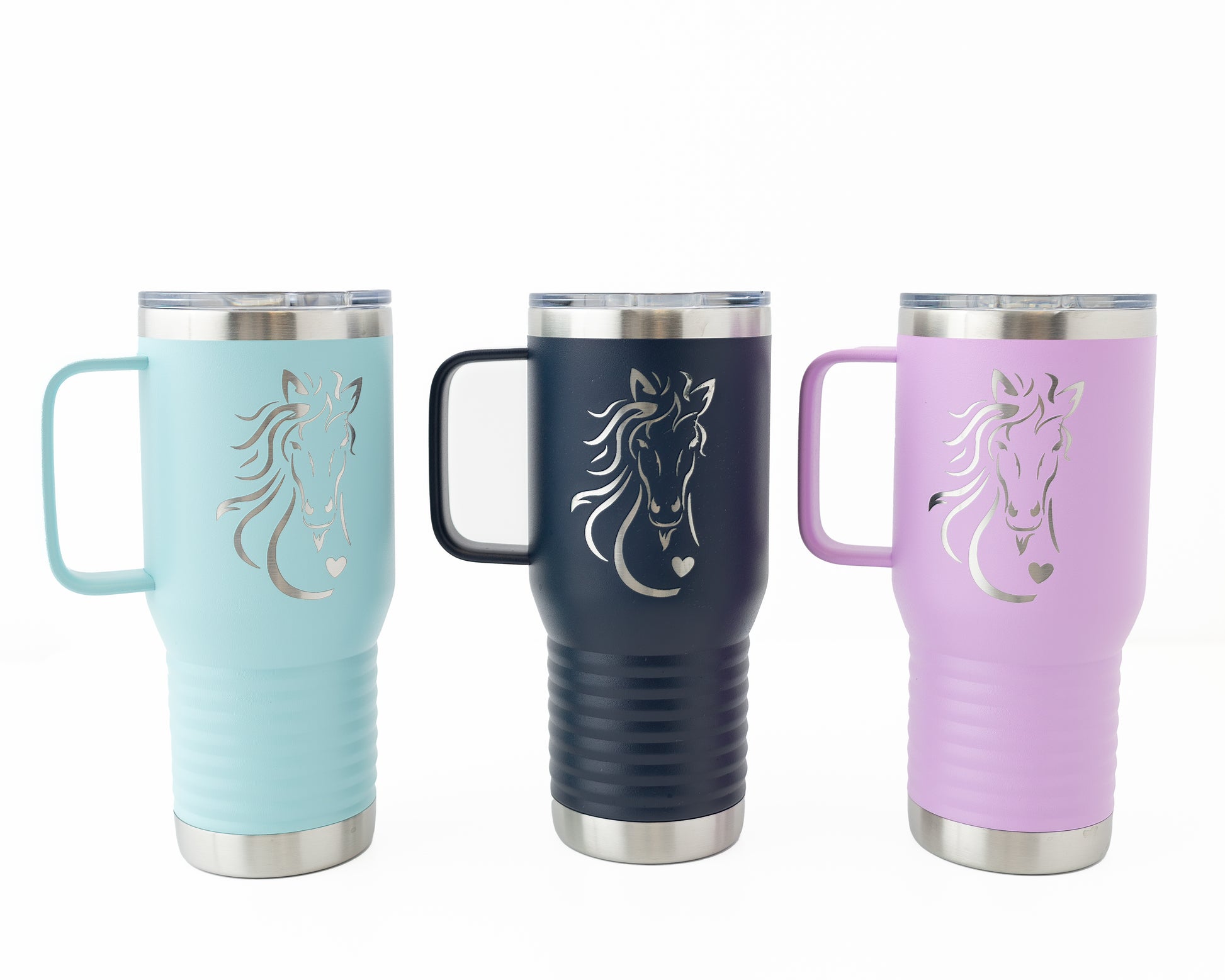 20oz Tumbler with Handle – Laser Engraved Horse Design for Equestrians