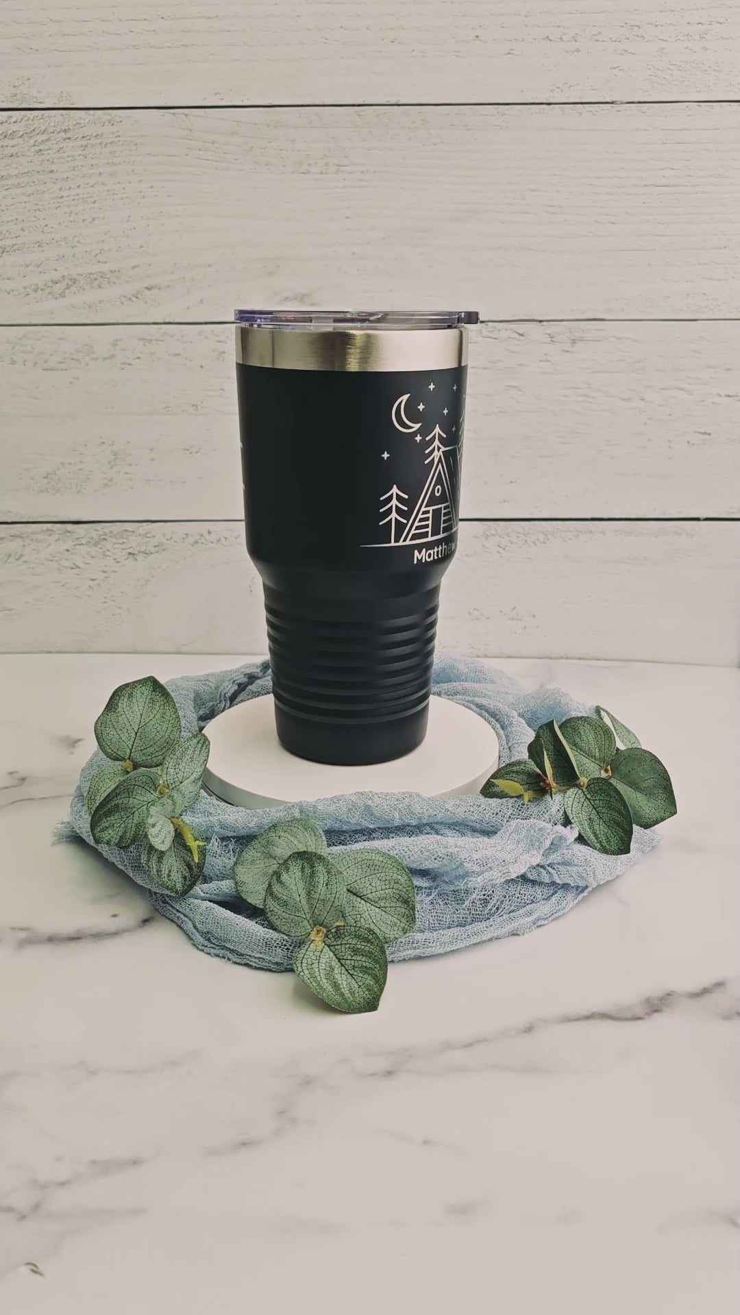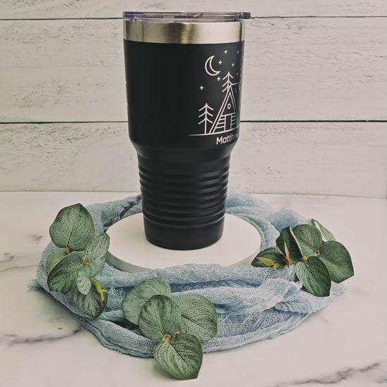 30oz Laser Engraved Tumbler with Cabin & Moon Design | Insulated Stainless Steel Travel Mug for Outdoor Lovers