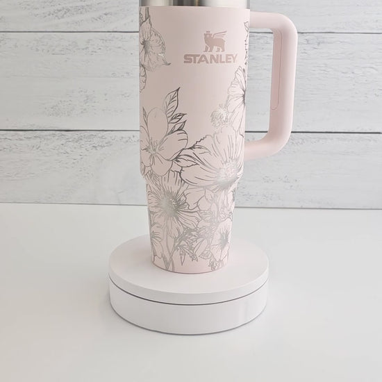 Celebrate the beauty of nature with this elegant 30oz Stanley Quencher tumbler, expertly laser engraved with a graceful wraparound floral design featuring cosmos, violets, and morning glories. Designed for flower lovers, gardeners, and anyone who appreciates a touch of natural charm, this tumbler blends durability with artistic detail.