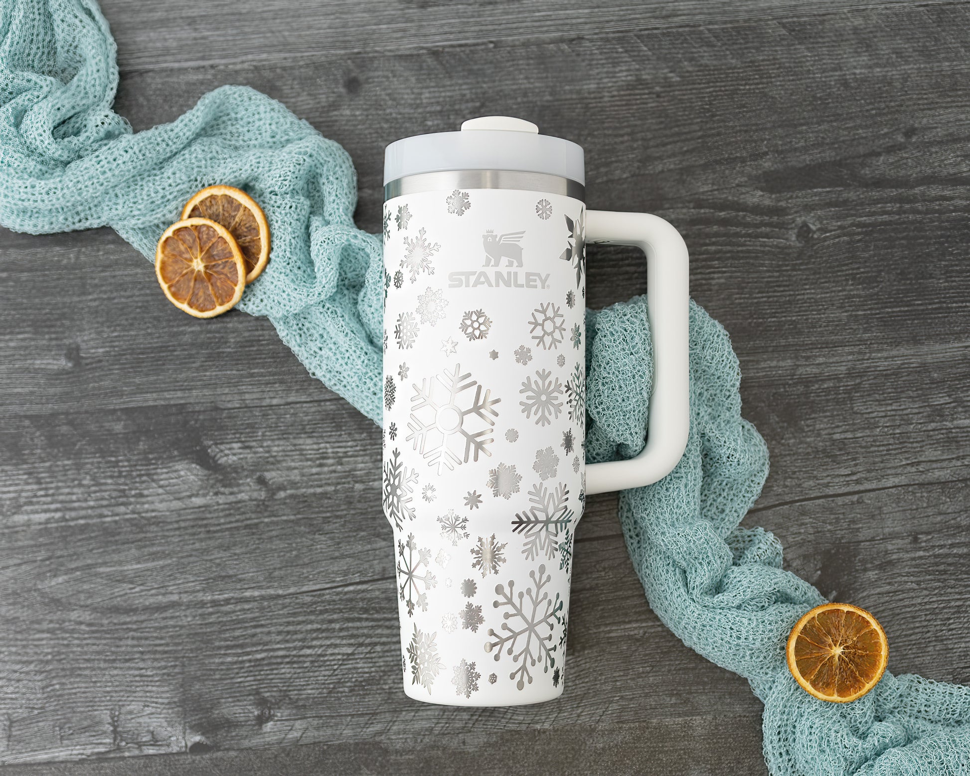 30oz Stanley Tumbler – Snowflake Engraved Winter Cup | Holiday Gift & Stocking Stuffer