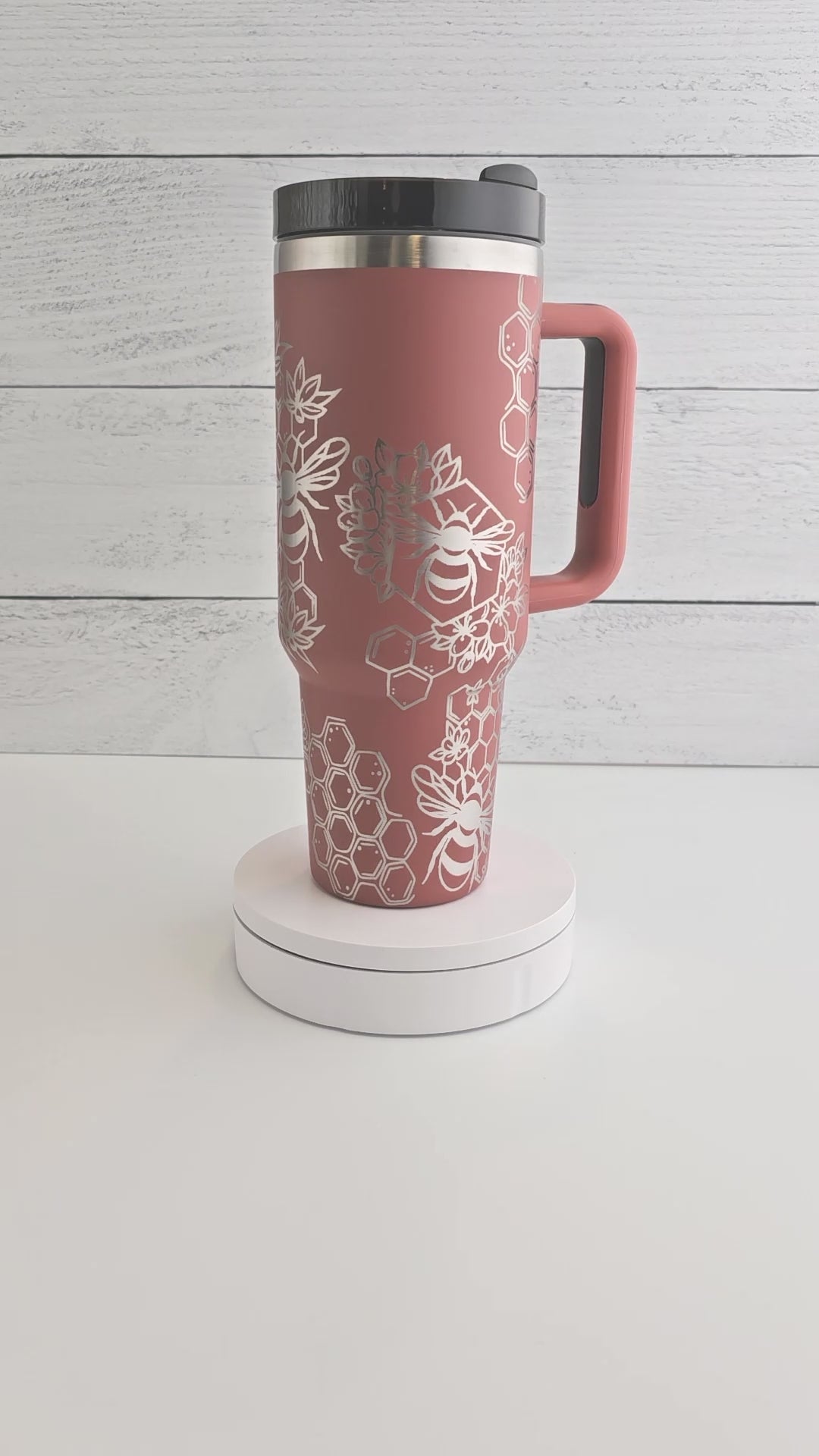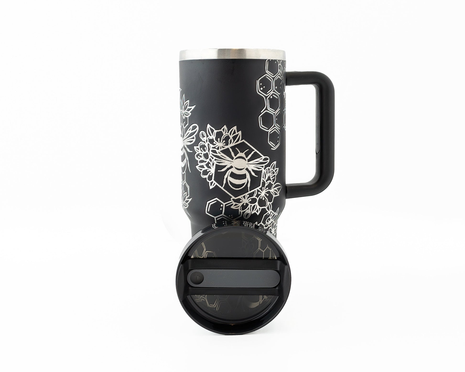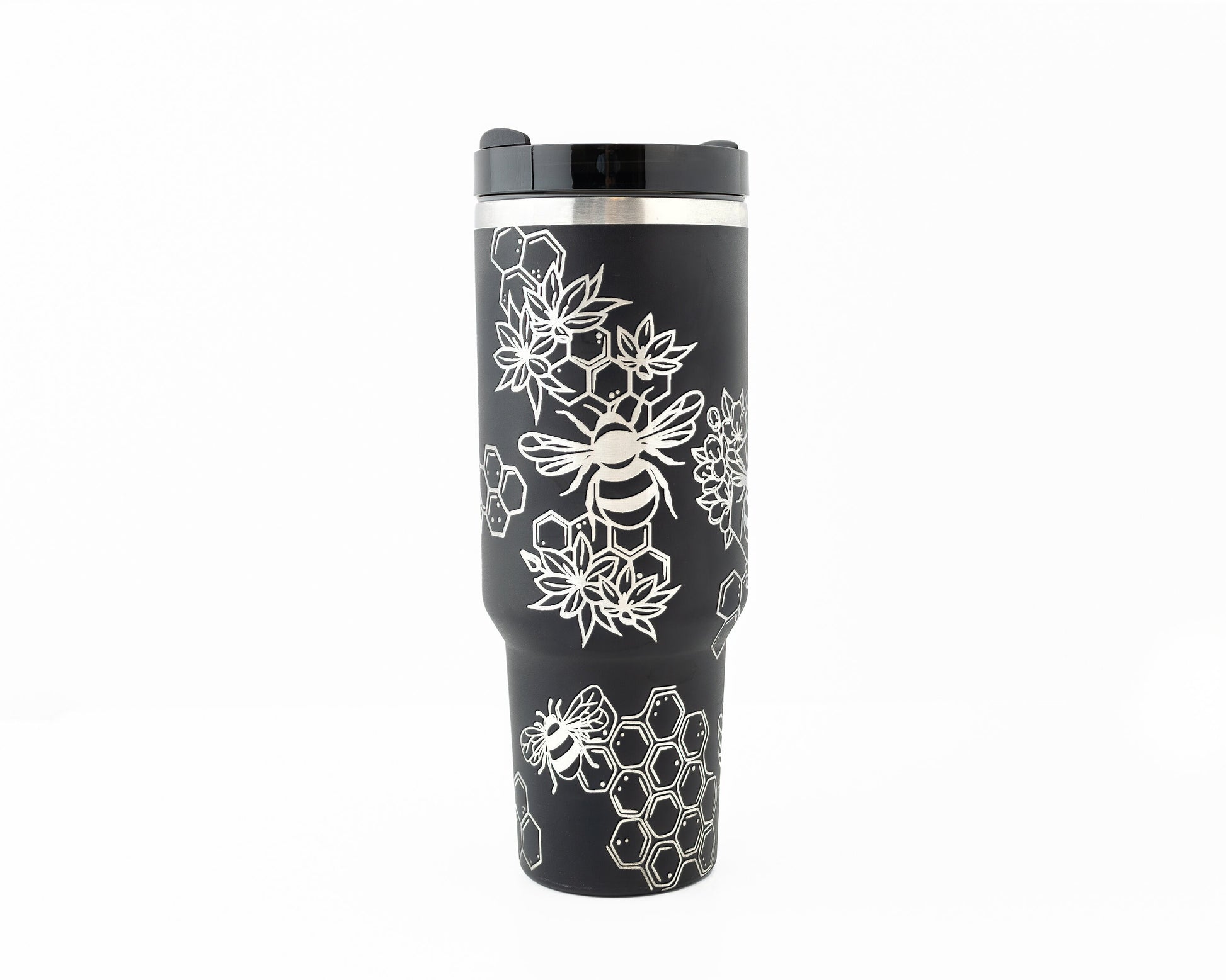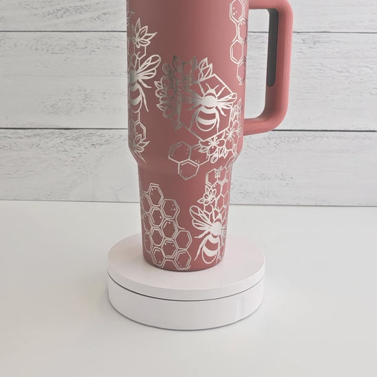 40oz Tumbler with Handle Laser Engraved with Bumble Bee & Honeycomb Design