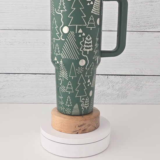 40oz Tumbler with Handle Laser Engraved with Christmas Tree Design