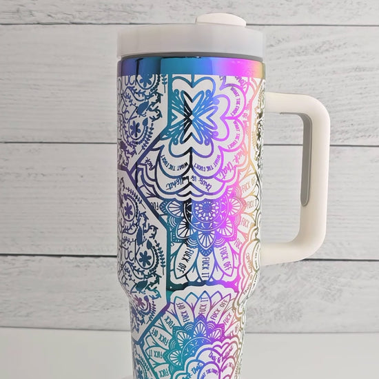 40oz Tumbler with Handle Laser Engraved with Mandala Hidden Swear Word (f*ck)