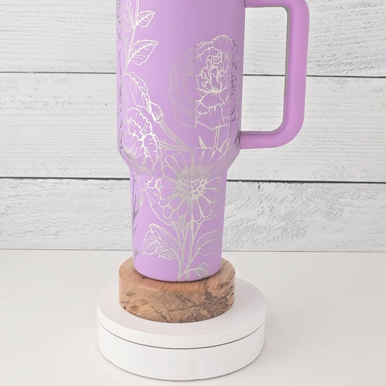 40oz Tumbler with Handle Laser Engraved with Zinnias & Carnations