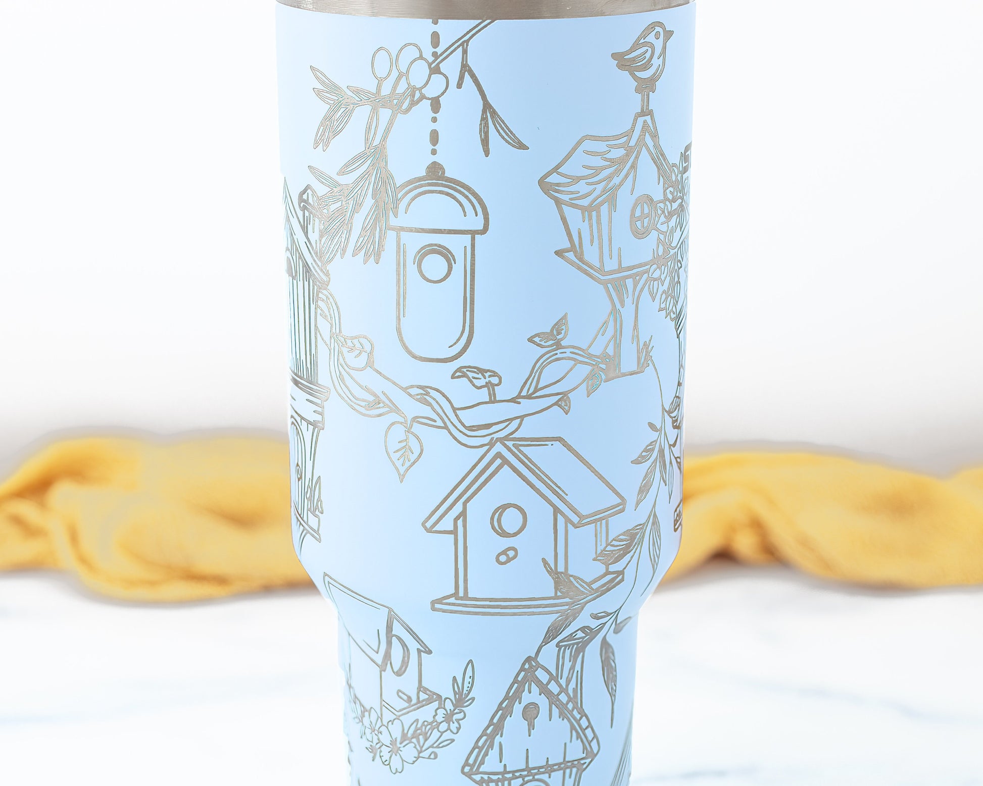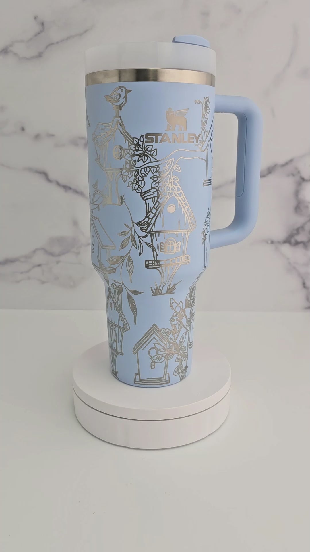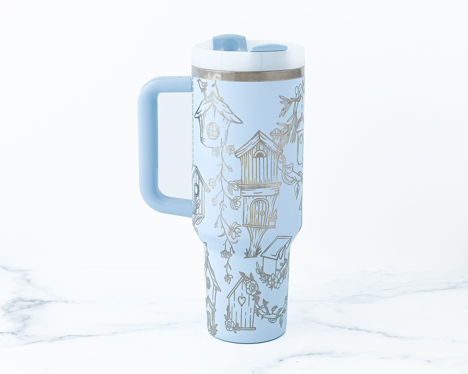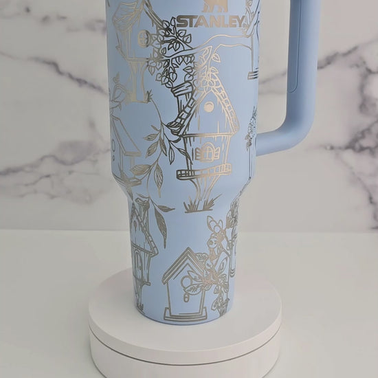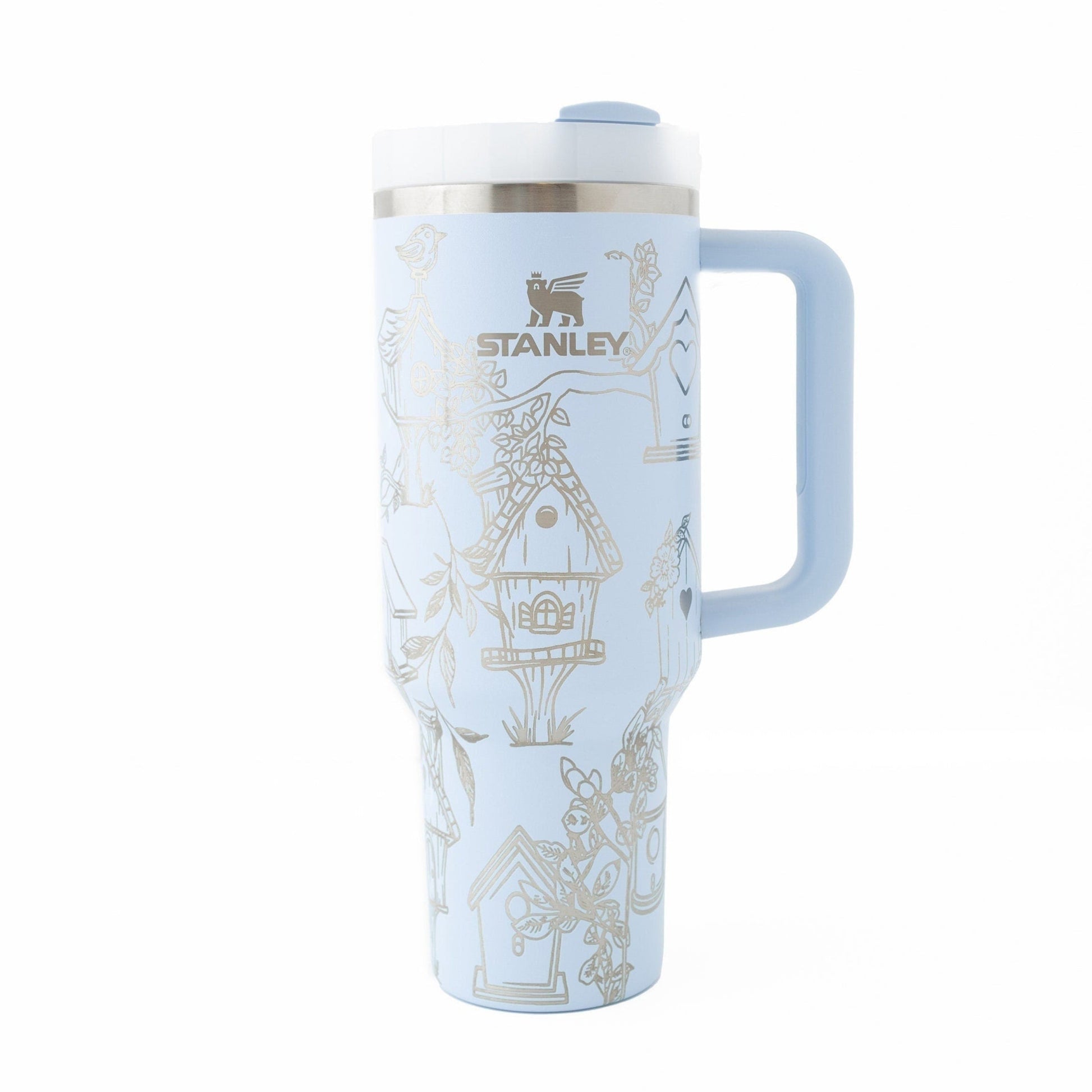 40oz Stanley Tumbler Laser Engraved with Birdhouse Wrap