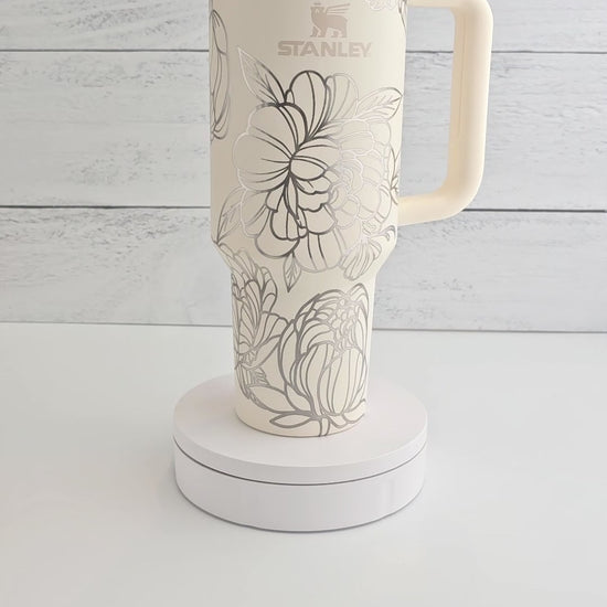 40oz Stanley Tumbler Laser Engraved with Peony Flower Wrap