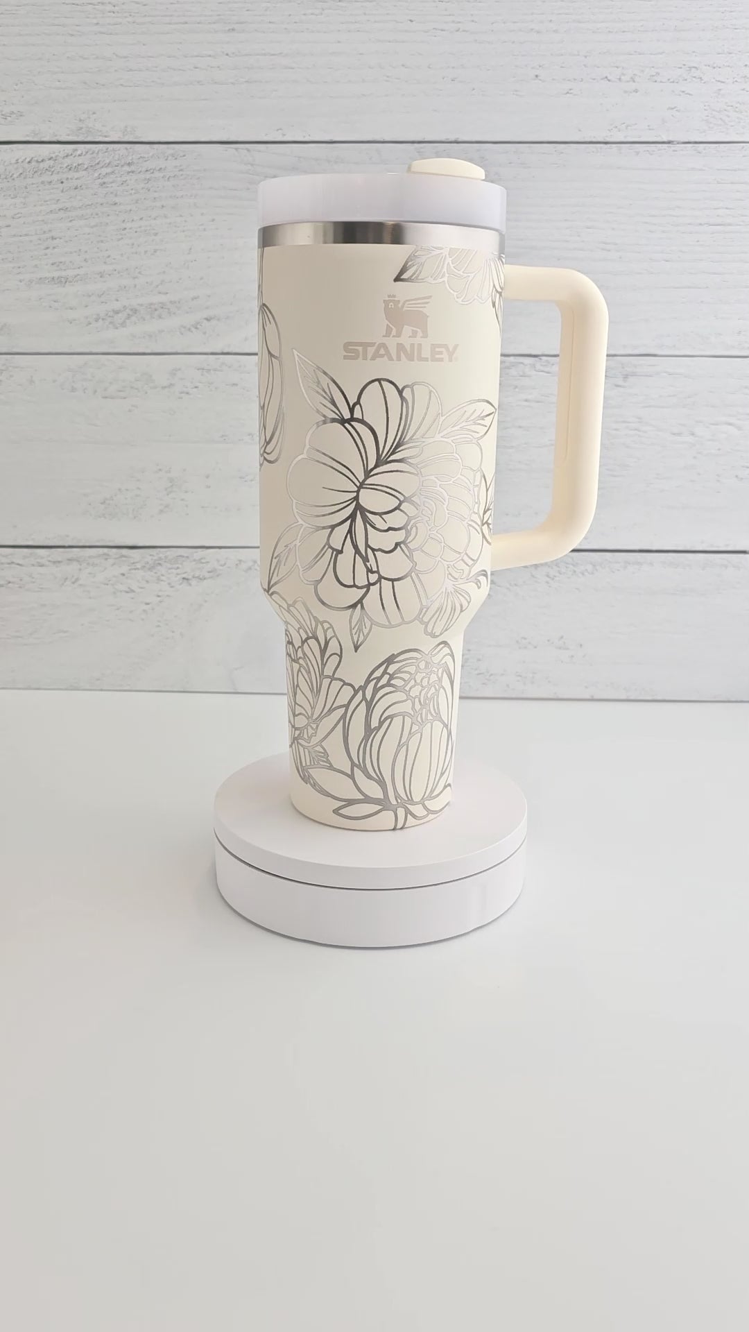 Sip in botanical beauty with our 40oz Stanley Quencher, laser engraved with an elegant wraparound peony design. This stunning tumbler pairs floral artistry with rugged practicality—ready to keep your drinks hot or cold all day long.