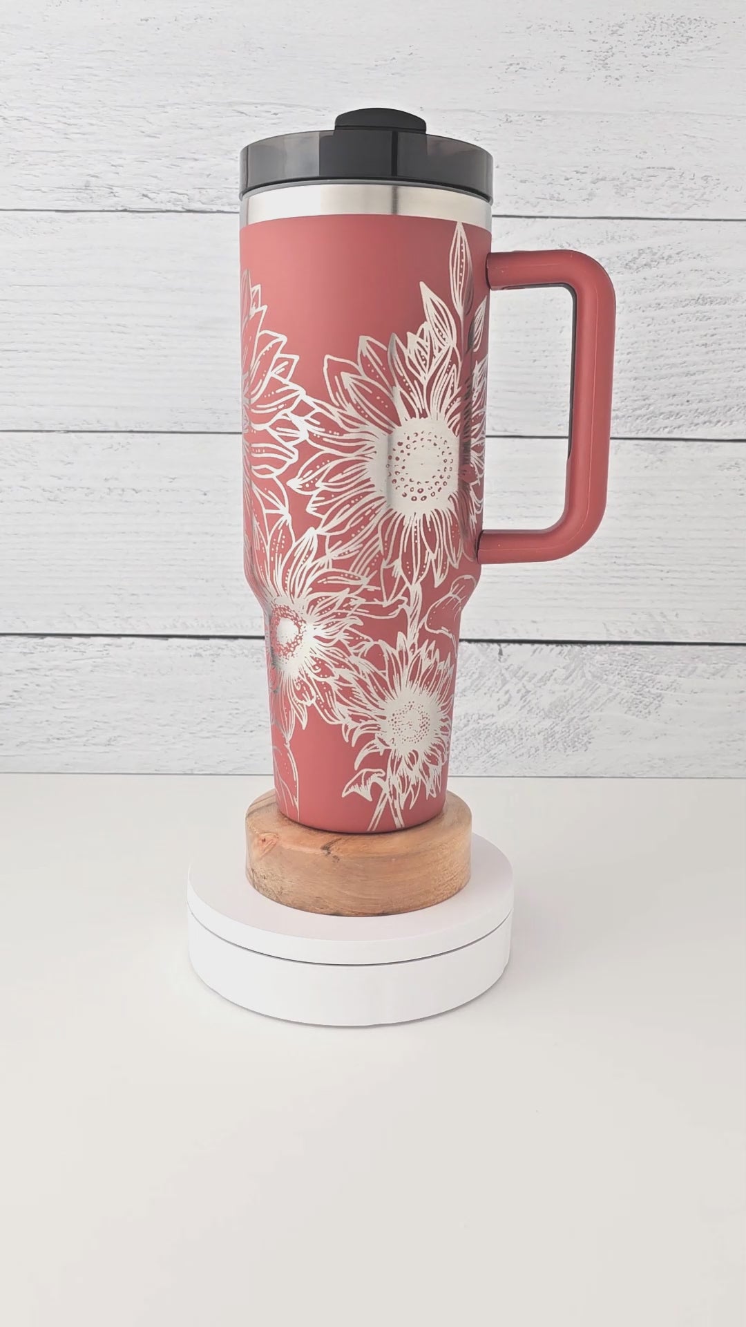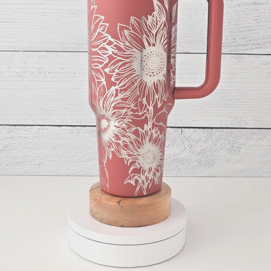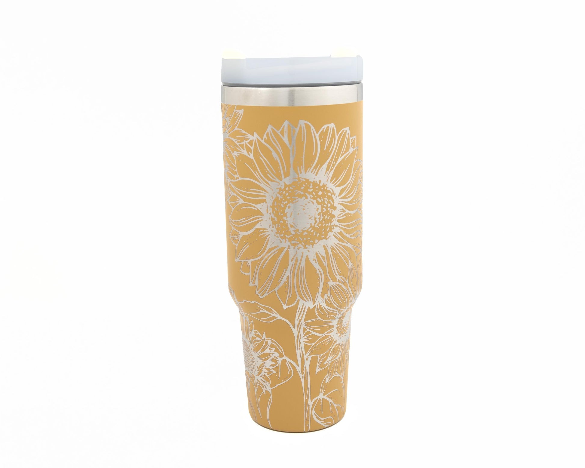 40oz Tumbler with Handle Laser Engraved with Sunflower design