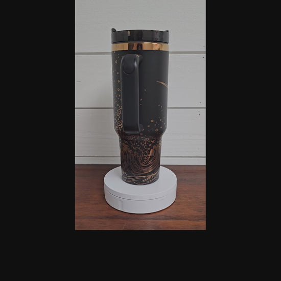 This black and copper 40oz tumbler features a striking sailfish design laser engraved directly into stainless steel, capturing the sailfish leaping out of the ocean in a moment of motion and strength. Designed for coastal living, fishing enthusiasts, and everyday use, this insulated tumbler combines rugged performance with refined nautical style.