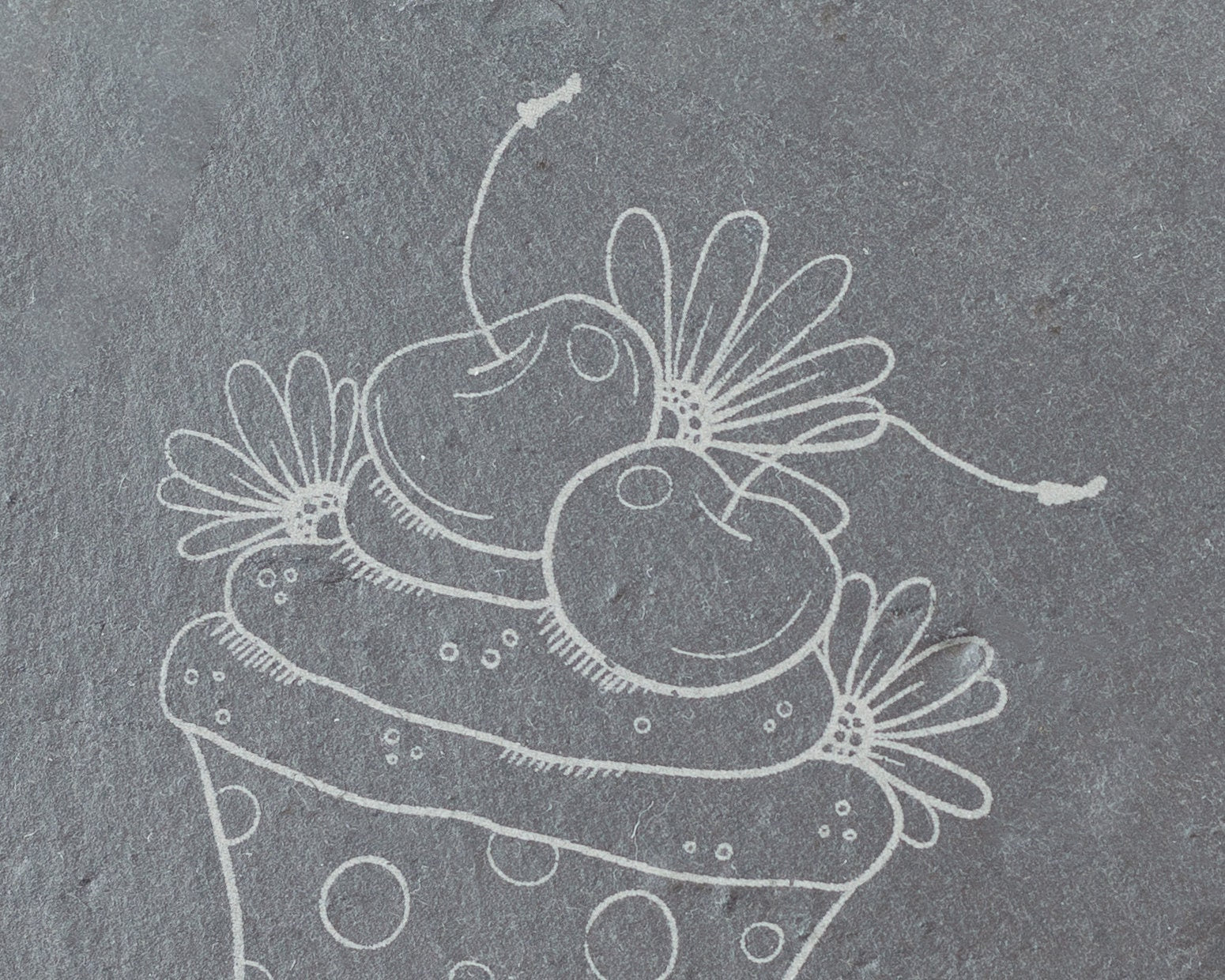 Cherry Cupcake Slate Coasters – Set of 4 Engraved for Bakers & Dessert Lovers