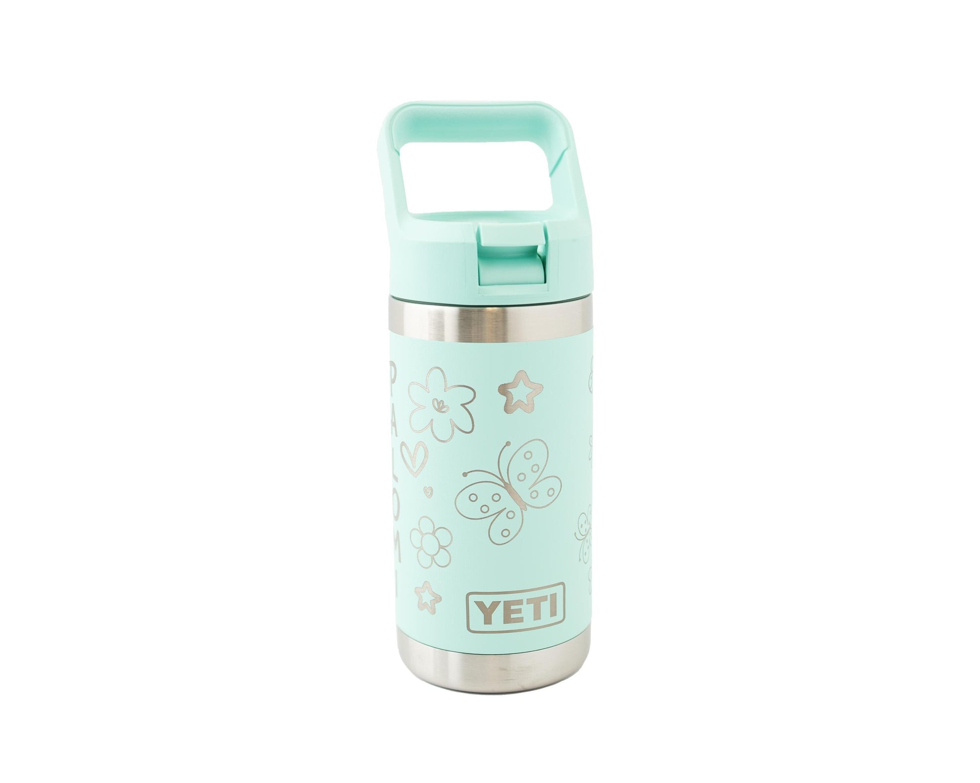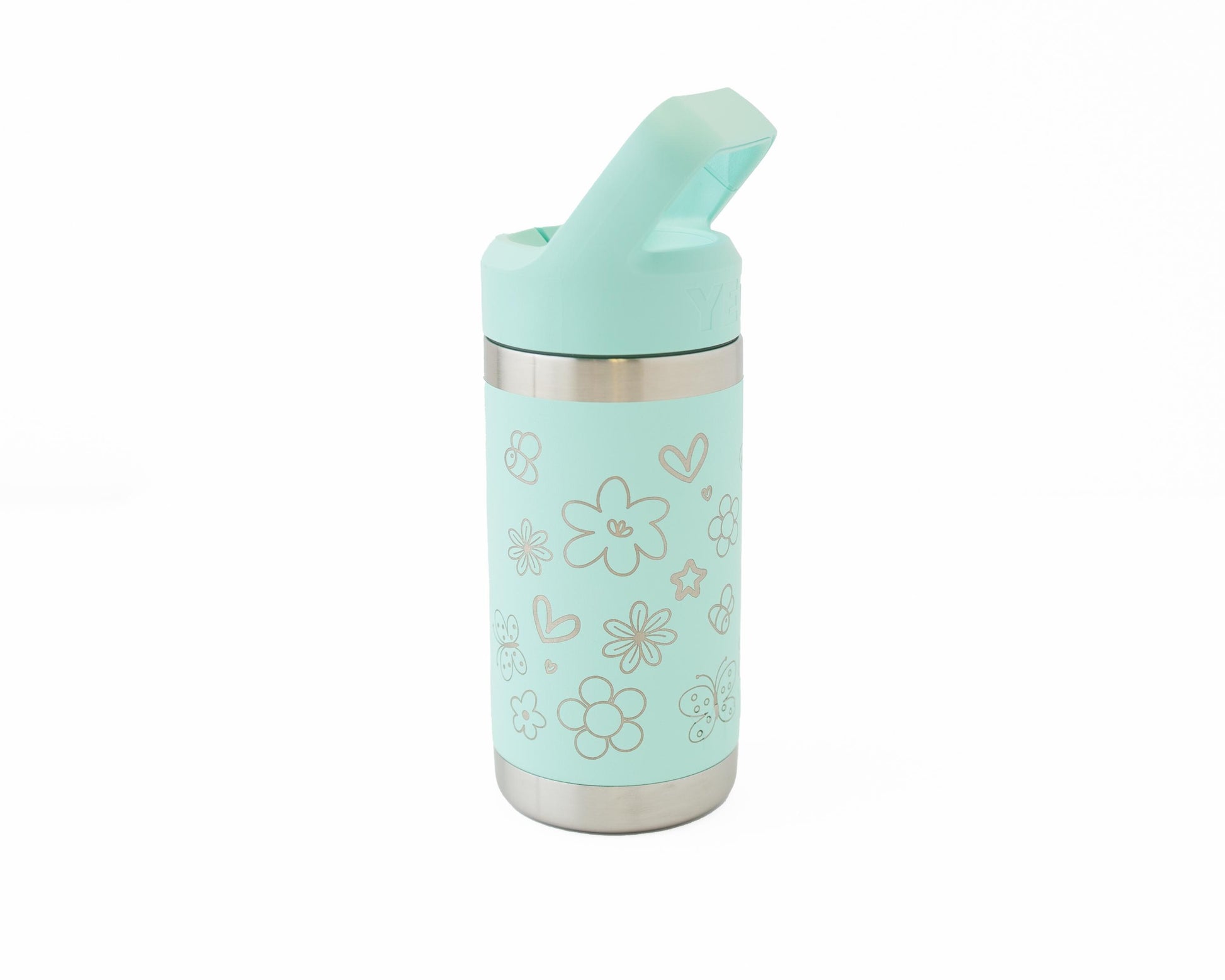 Custom Yeti Rambler Jr. 12oz Kids Water Bottle Laser engraved with Flowers & Butterflies Wrap and Personalized Name
