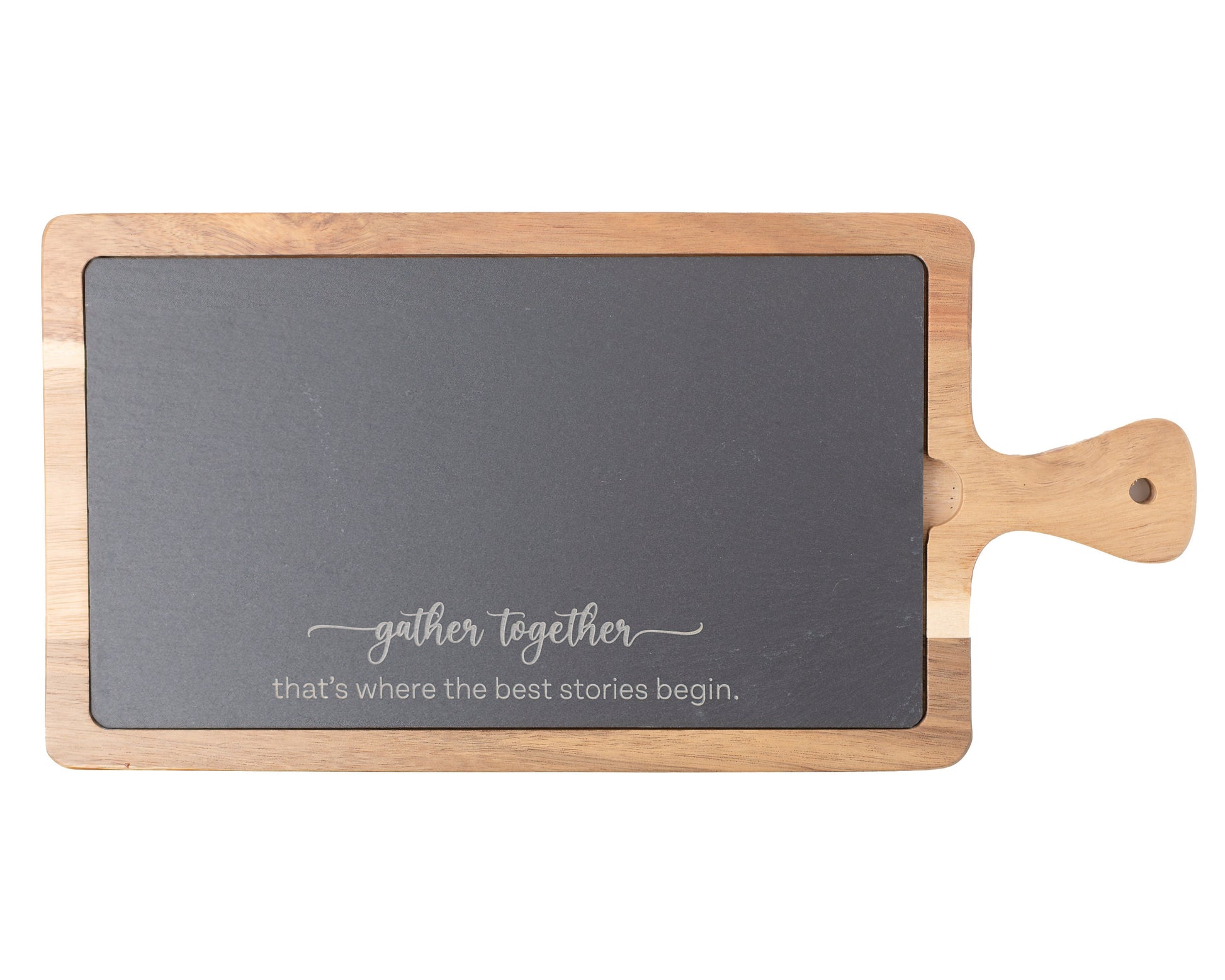 "Gather Together" Slate & Acacia Cheese Board – Laser Engraved Host or Housewarming Gift