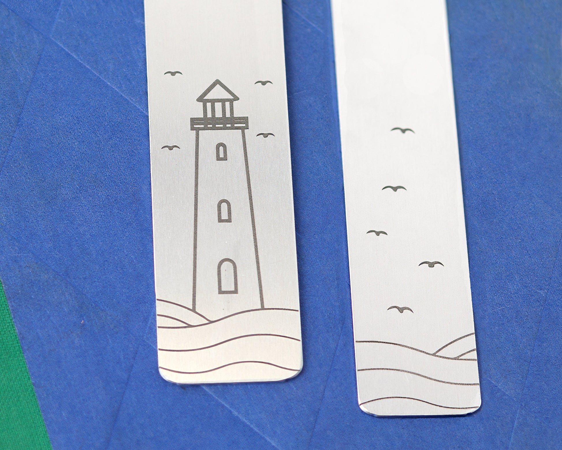 Ocean Bookmark lacer engraved with Monogram, Lighthouse & Seagulls