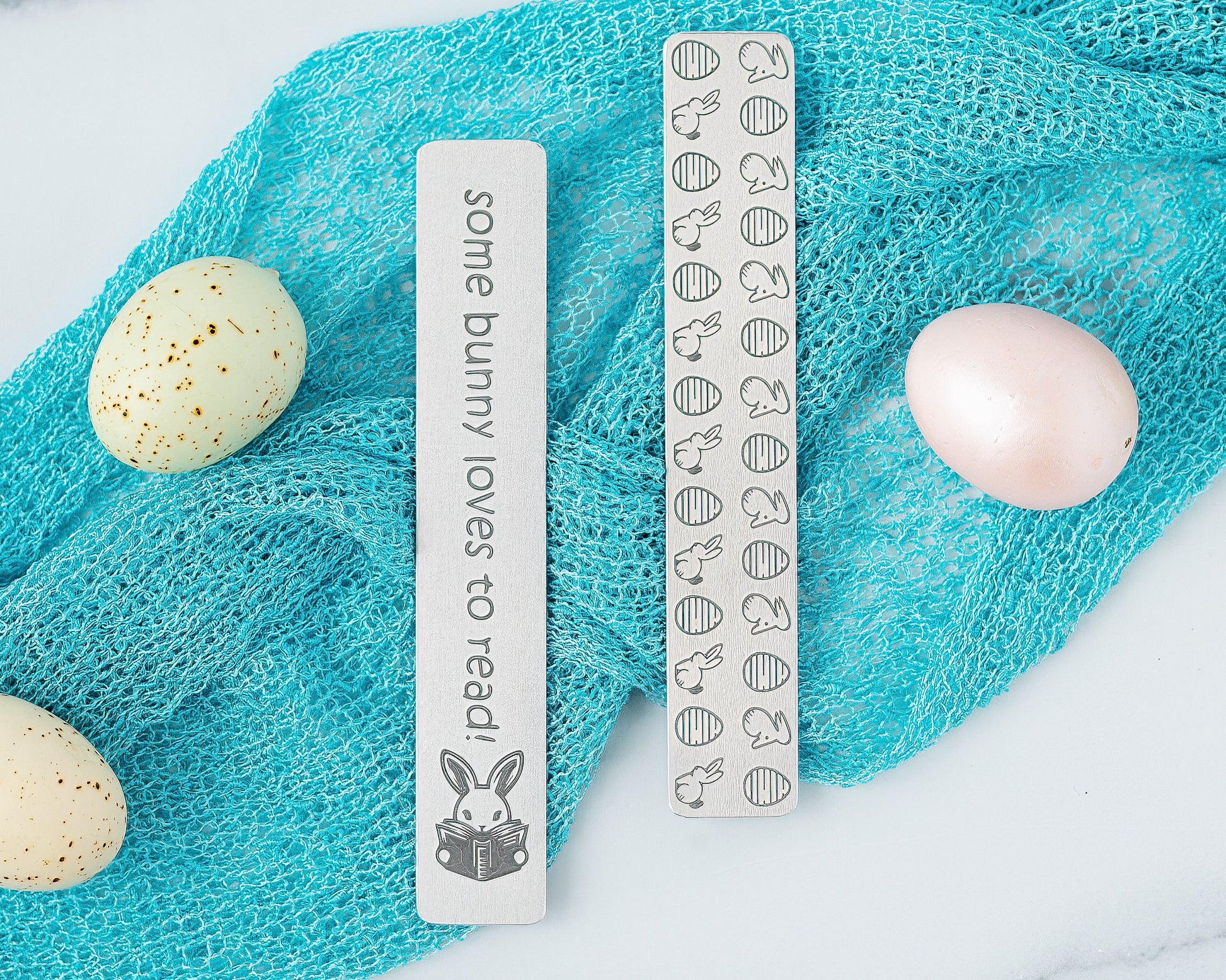 Celebrate Easter with a playful twist for book lovers! This laser-engraved aluminum bookmark features an adorable reading bunny and the phrase “Some Bunny Loves to Read!”—the perfect Easter basket stuffer for readers of all ages.