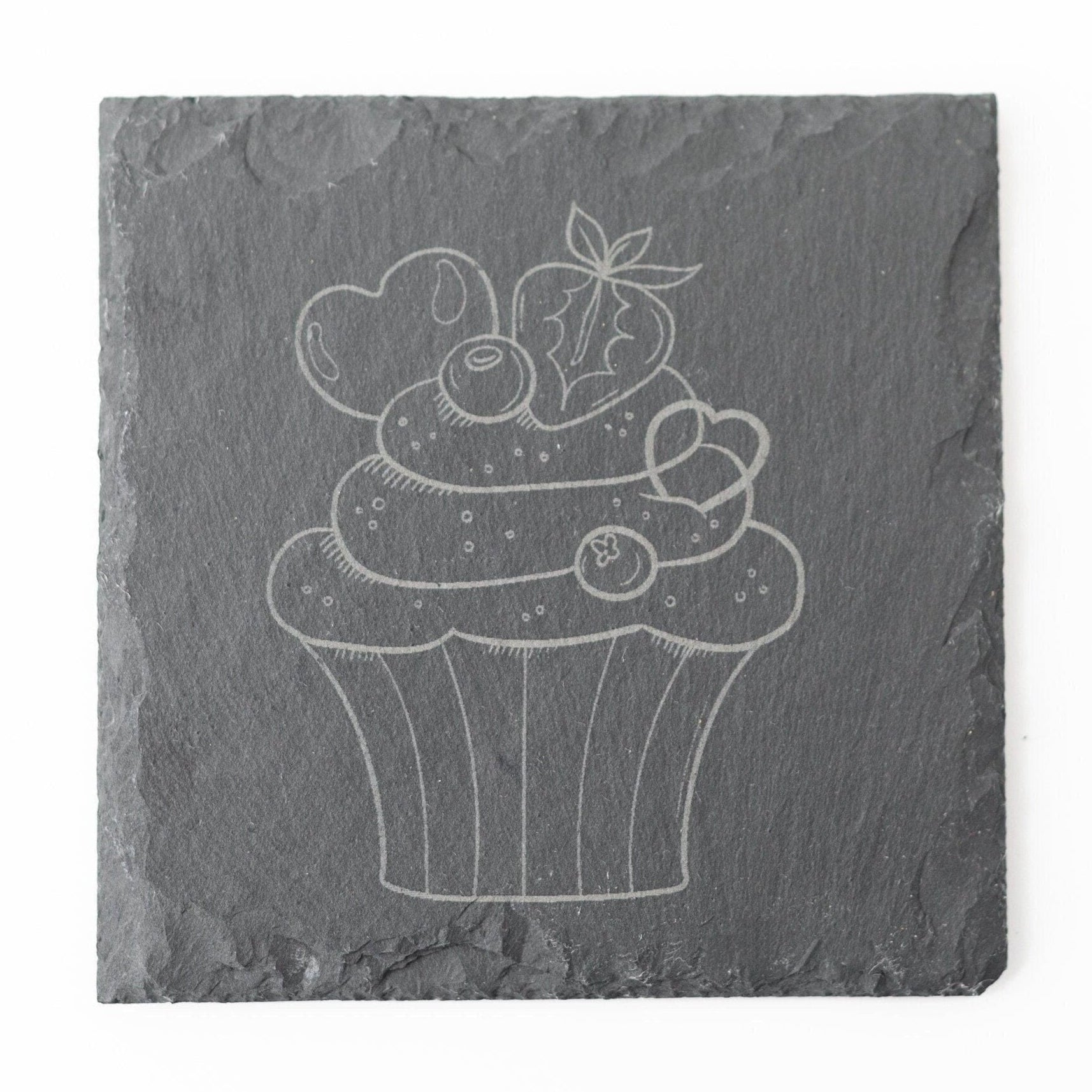 Strawberry Cupcake Slate Coasters – Laser Engraved Set of 4