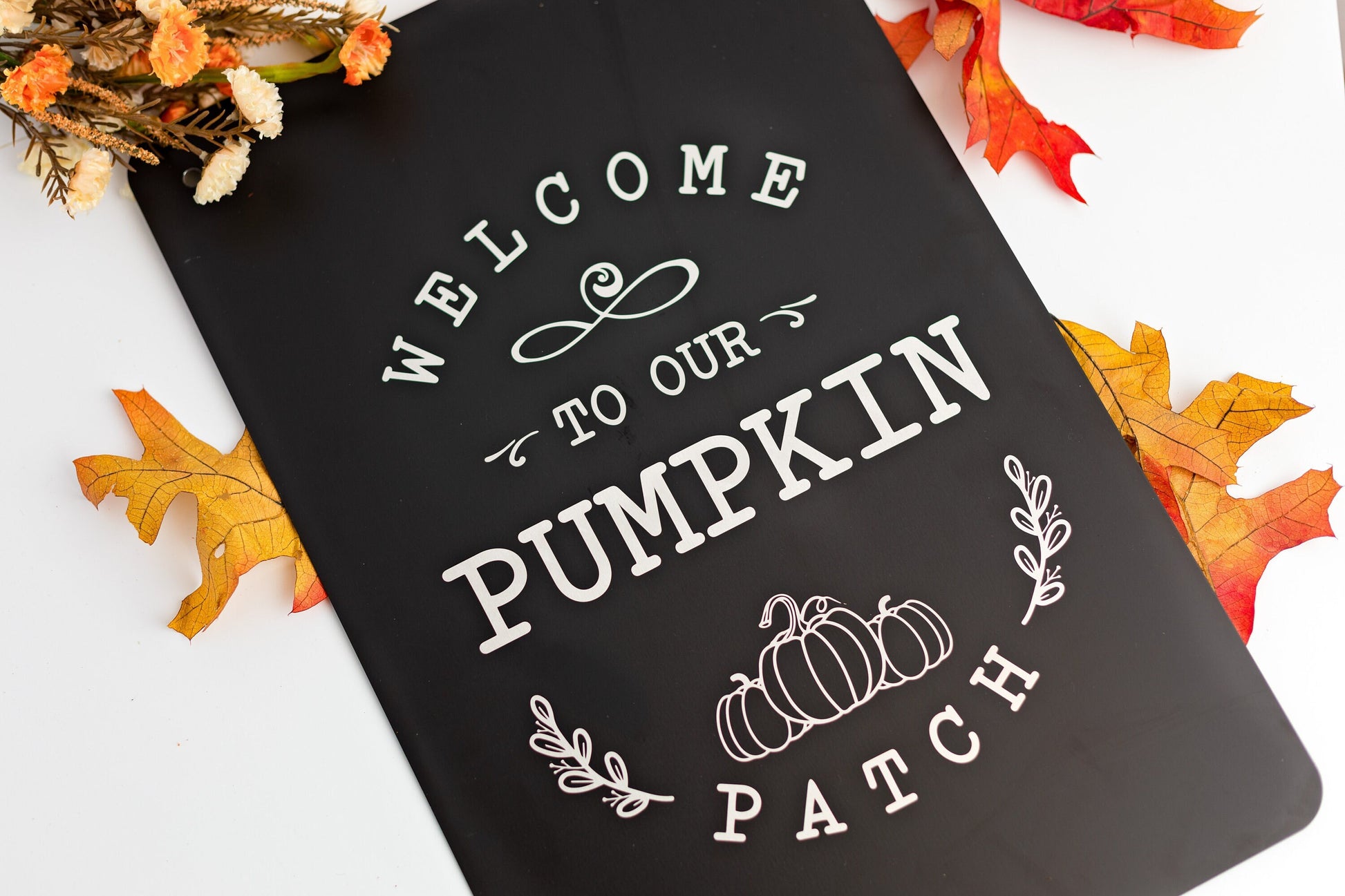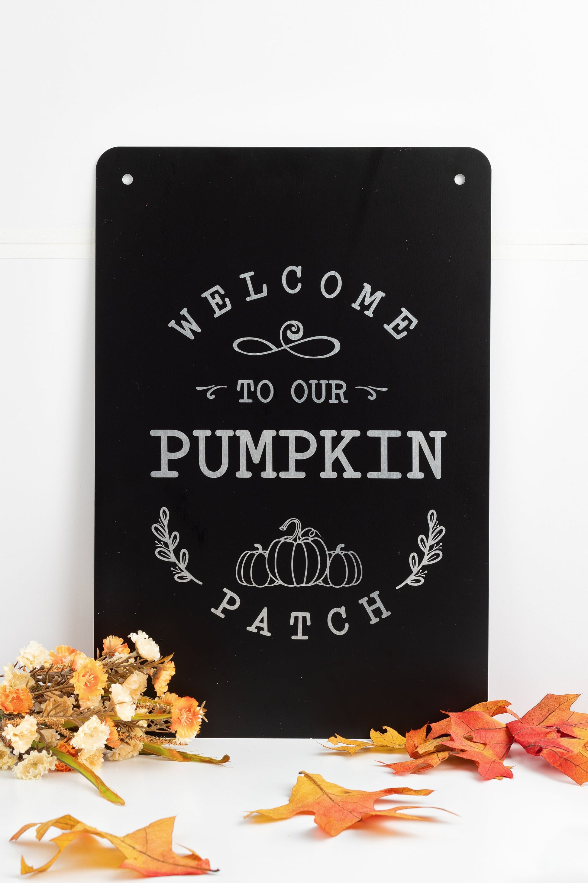 Metal Garden Flag – "Welcome to Our Pumpkin Patch" Engraved Fall Yard Sign